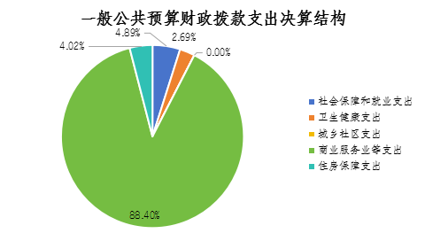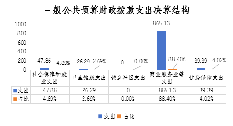 2024年一般公共預(yù)算財(cái)政撥款支出978.67萬元,主要用于以下方面:社會(huì)保障和就業(yè)支出47.86萬元,占總支出的4.89%;衛(wèi)生健康支出26.29萬元,占總支出的2.69%;商業(yè)服務(wù)業(yè)等支出865.13萬元,占總支出的88.40%;住房保障支出39.39萬元,占總支出的4.02%。